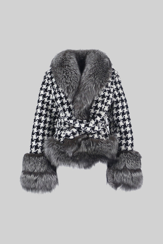 21% İndirimKazayağı Desenli Yün Palto