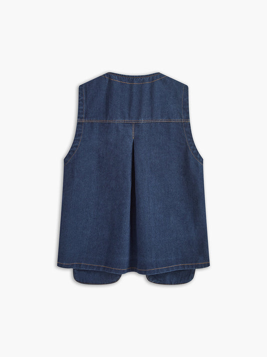 21% İndirimKravat Yaka Cepli Pileli Denim Uzun Üst
