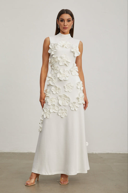 22% İndirimLiora Beyaz Gül Çiçek Uzun Elbise