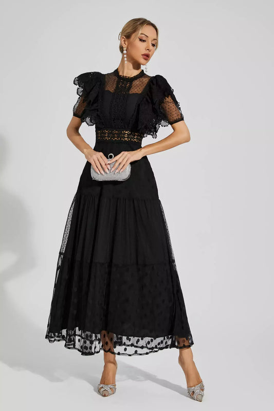 35% İndirimNoor Siyah Polka Dot Uzun Elbise