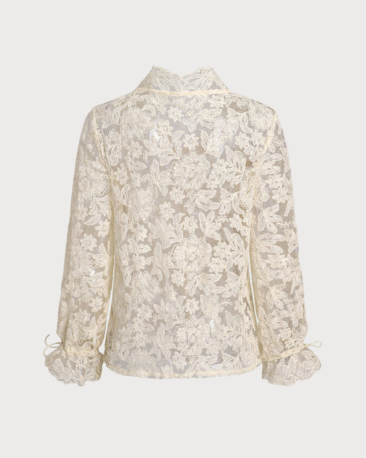 43% İndirimBej Tekne Yaka Dantel Tişört