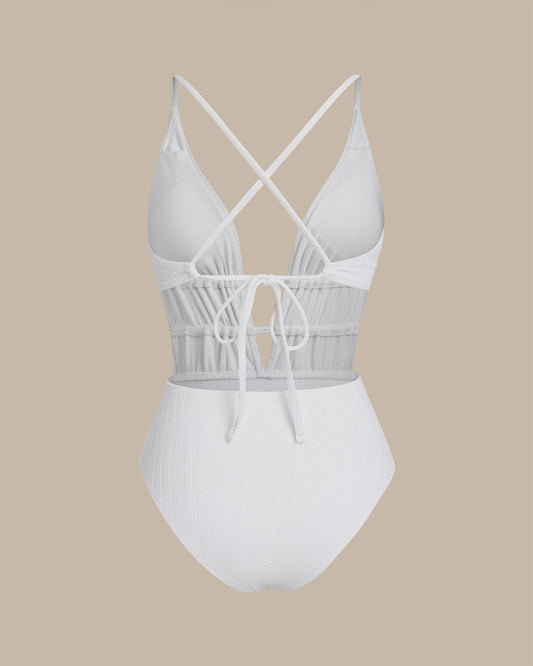 37% İndirimBeyaz Bralette Dokulu Tek Parça Mayo