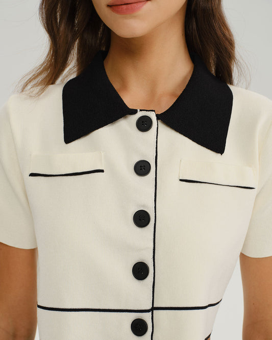 49% İndirimBej Kontrast Tek Göğüslü Kısa Hırka
