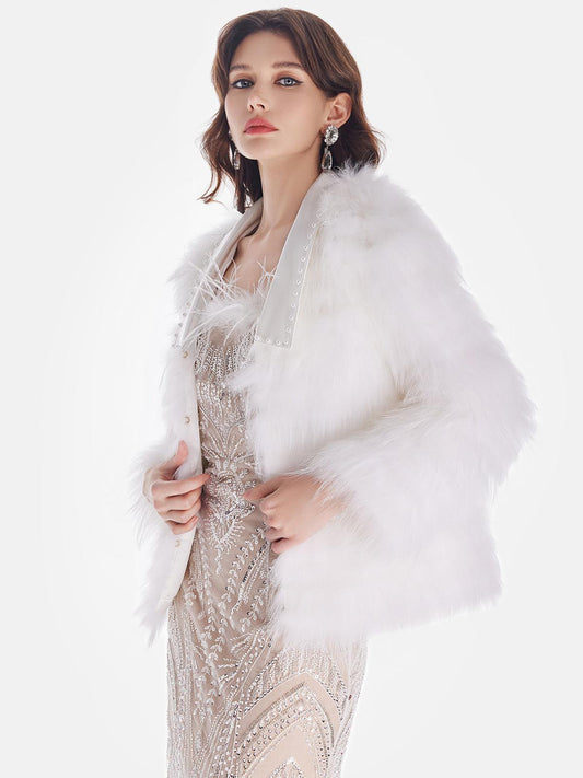 Beyaz Tüy Detaylı Işıltılı Ceket