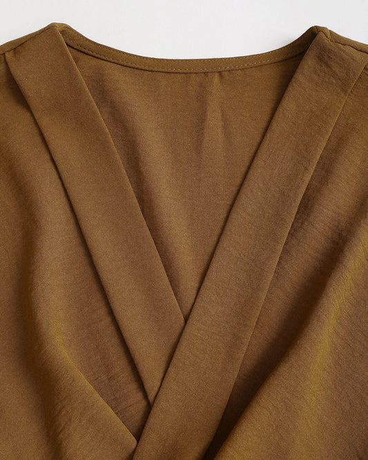 54% İndirimŞifon Pileli Kravat Yaka Panel Gömlek