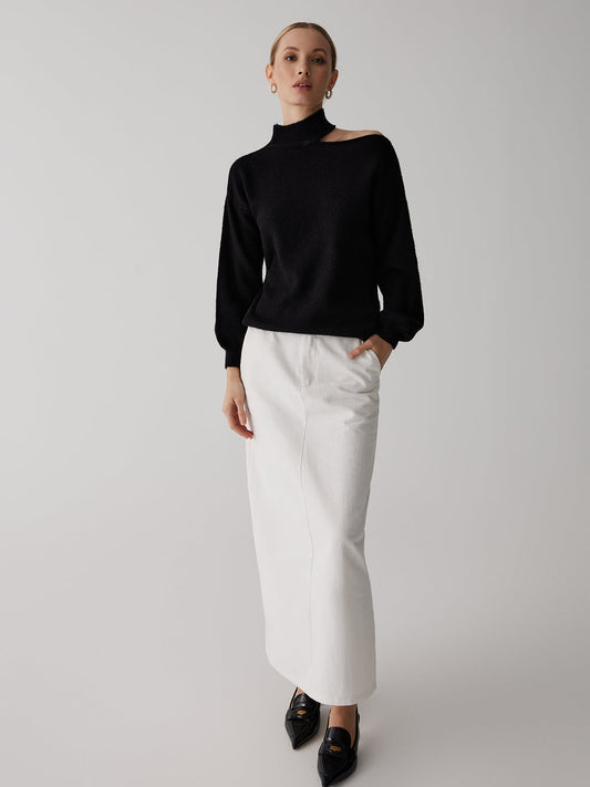 35% İndirimYüksek Streç Omuzu Açık Kazak