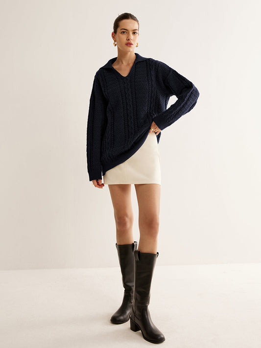 23% İndirimYün Karışımlı Balıkçı Yaka Biye Kazak