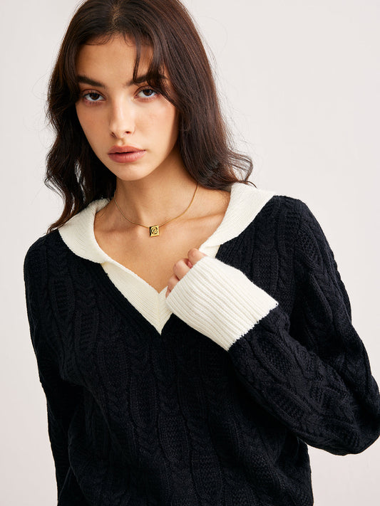 Zarif Kontrast Biye Anahtar Deliği Yaka Polo Kazak