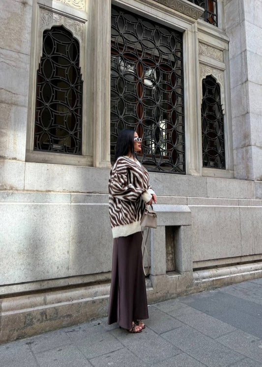 21% İndirimCharm Zebra Desenli Oversize Kazak