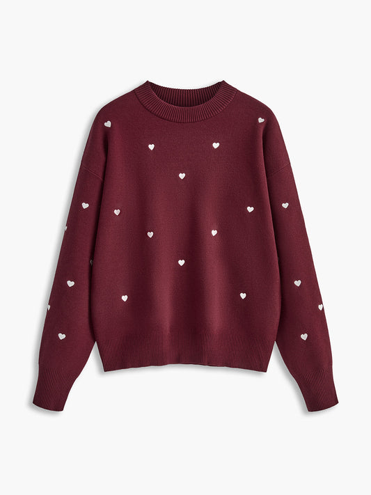 47% İndirimİşlemeli Kalp Büyük Boy Örgü Kazak