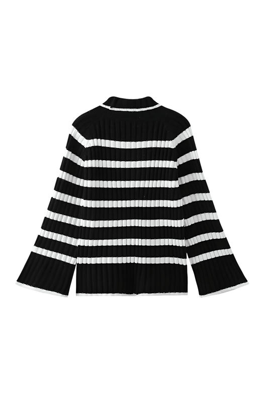 52% İndirimSiyah Beyaz Çizgili Triko Kazak