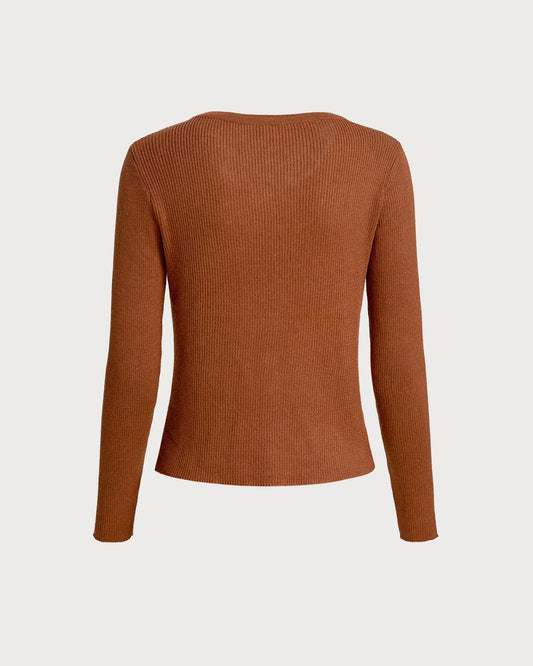 25% İndirimKahverengi V Yaka Düğmeli Hırka
