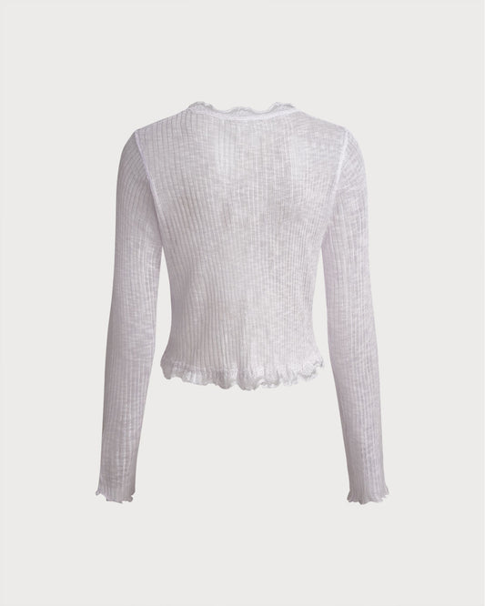 18% İndirimBeyaz V Yaka Örgü Hırka