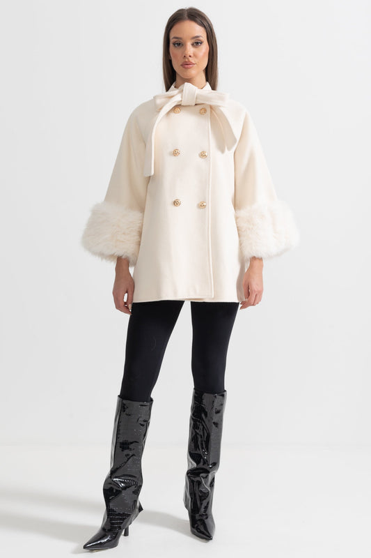 28% İndirimKürk Manşetli ve Kurdele Detaylı Kaban
