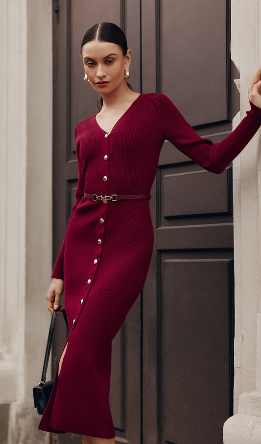 Örme V Yaka Kemerli Midi Elbise -KırmızıNormal fiyat 2,190.00TLNormal fiyatBirim fiyat /0.00TLİndirimli fiyat 2,190.00TL