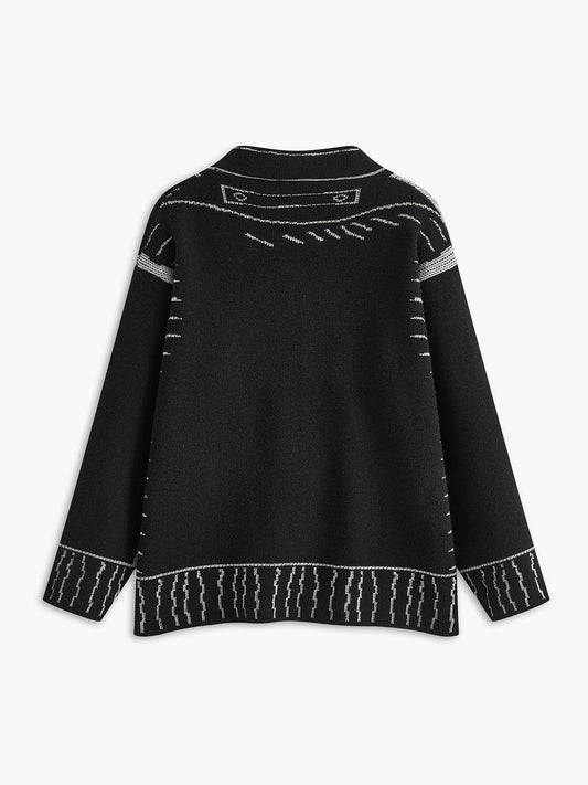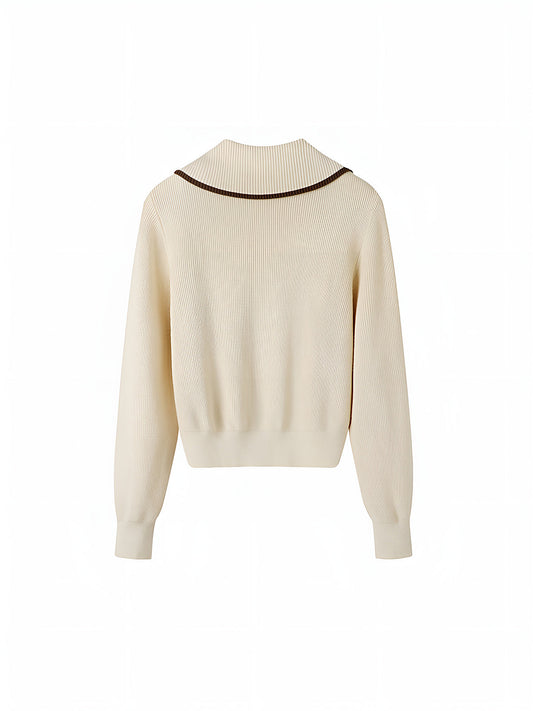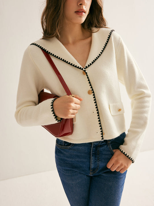 45% İndirimYelken Yaka Kontrast Uçlu Düğmeli Hırka