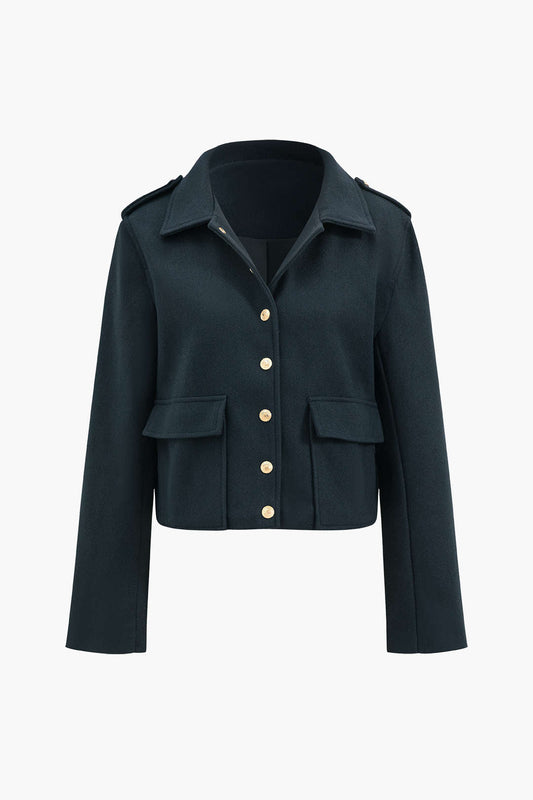 39% İndirimAltın Düğme Detaylı Siyah Kısa Ceket