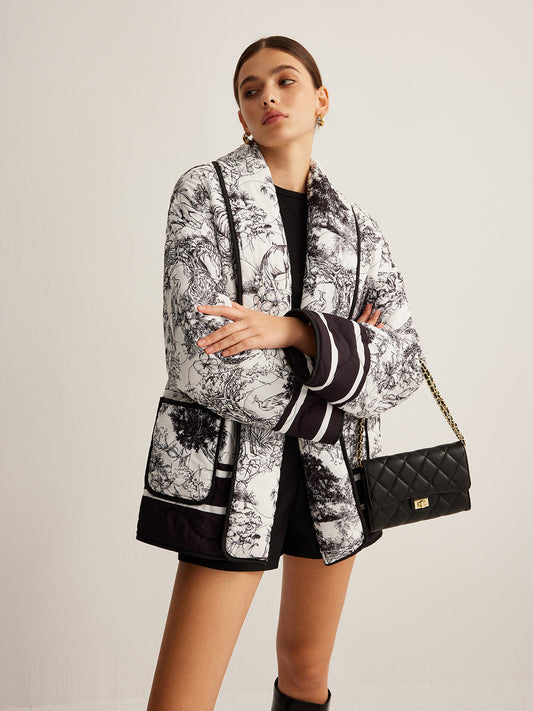 27% İndirimDesenli Kuşaklı Oversize Mont