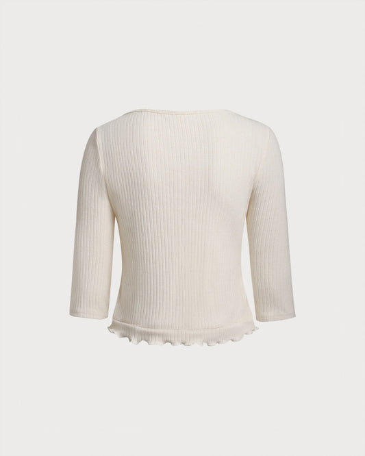 46% İndirimBeyaz Kısa Kollu Yivli Örgü Tişört