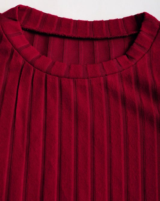 35% İndirimŞarap Kırmızısı Kaburga Örgü Çan Kollu Tişört