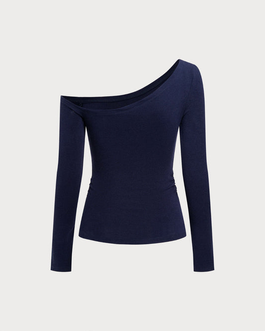 44% İndirimLacivert Tek Omuzlu Örgü Tişört