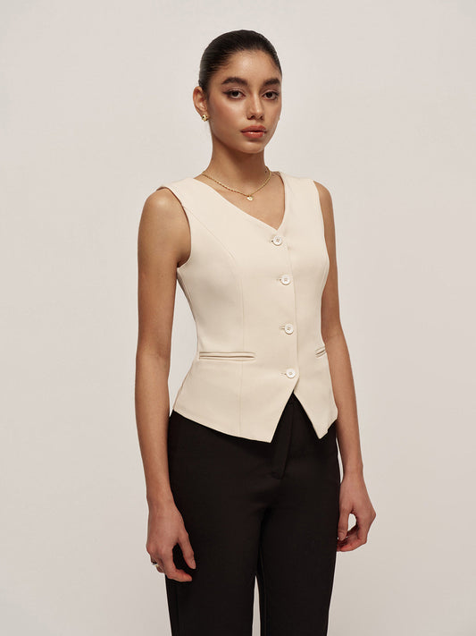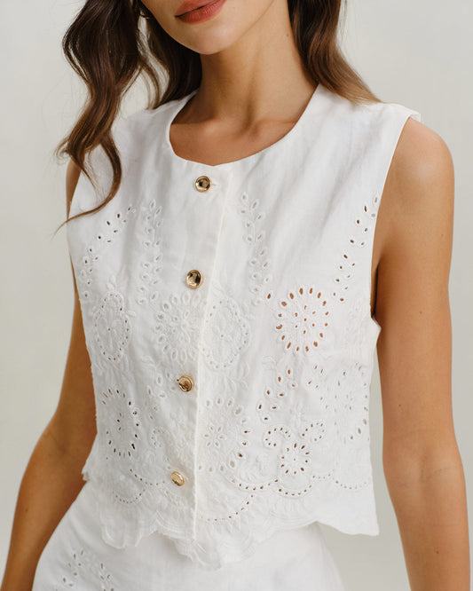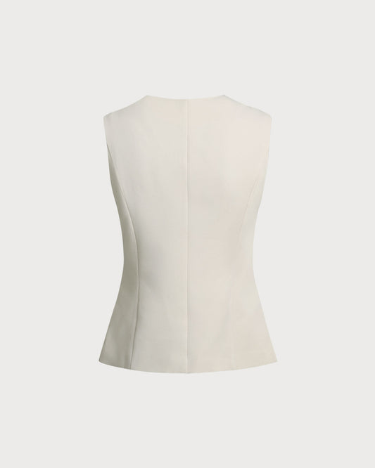 23% İndirimBeyaz Halter Düğmeli Yelek