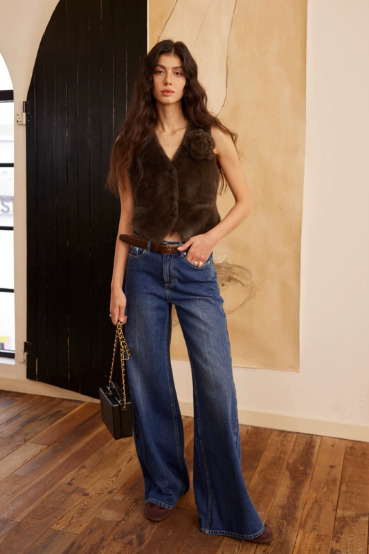 44% İndirimCasey Çiçek Broşlu Suni Kürk Yelek