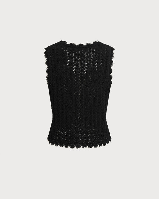 24% İndirimKadın Siyah Tekne Yaka Pamuklu Keten Yelek