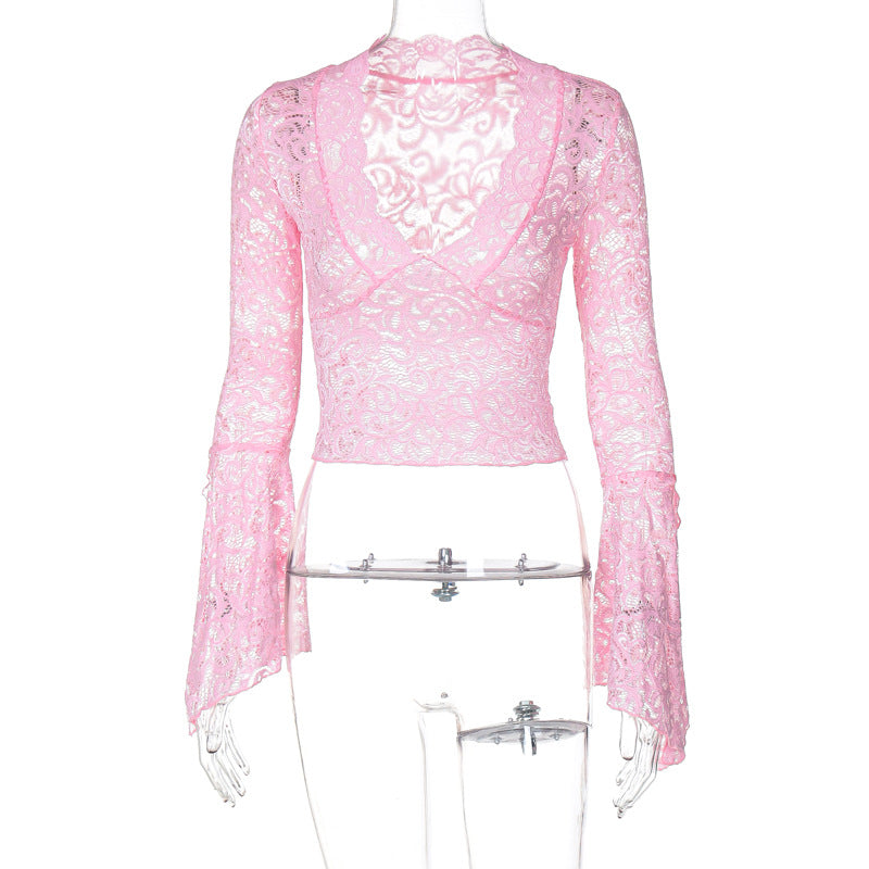 Feminen ve dikkat çekici tarzıyla öne çıkan kırmızı dantel bluz, romantik detaylarıyla şıklığınızı tamamlar. Transparan dantel kumaşı, derin V yaka kesimi ve hafif genişleyen kollarıyla cesur ama zarif bir görünüm sunar. Jeanlerle gündüz, şık eteklerle akşam kombinlerinde rahatlıkla tercih edebilirsiniz.