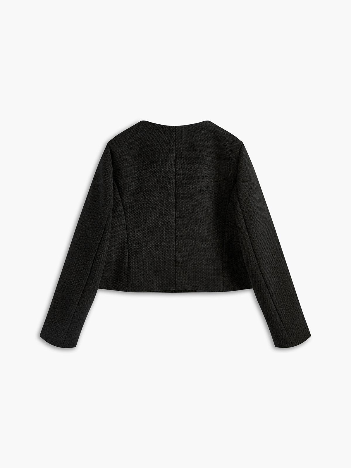 Şıklığın sade bir yansıması olan bu siyah kısa ceket, altın düğme detayları ve cepli tasarımıyla zarif bir duruş sunuyor. Hem klasik hem de modern kombinlerinizi tamamlayacak özel bir parça!