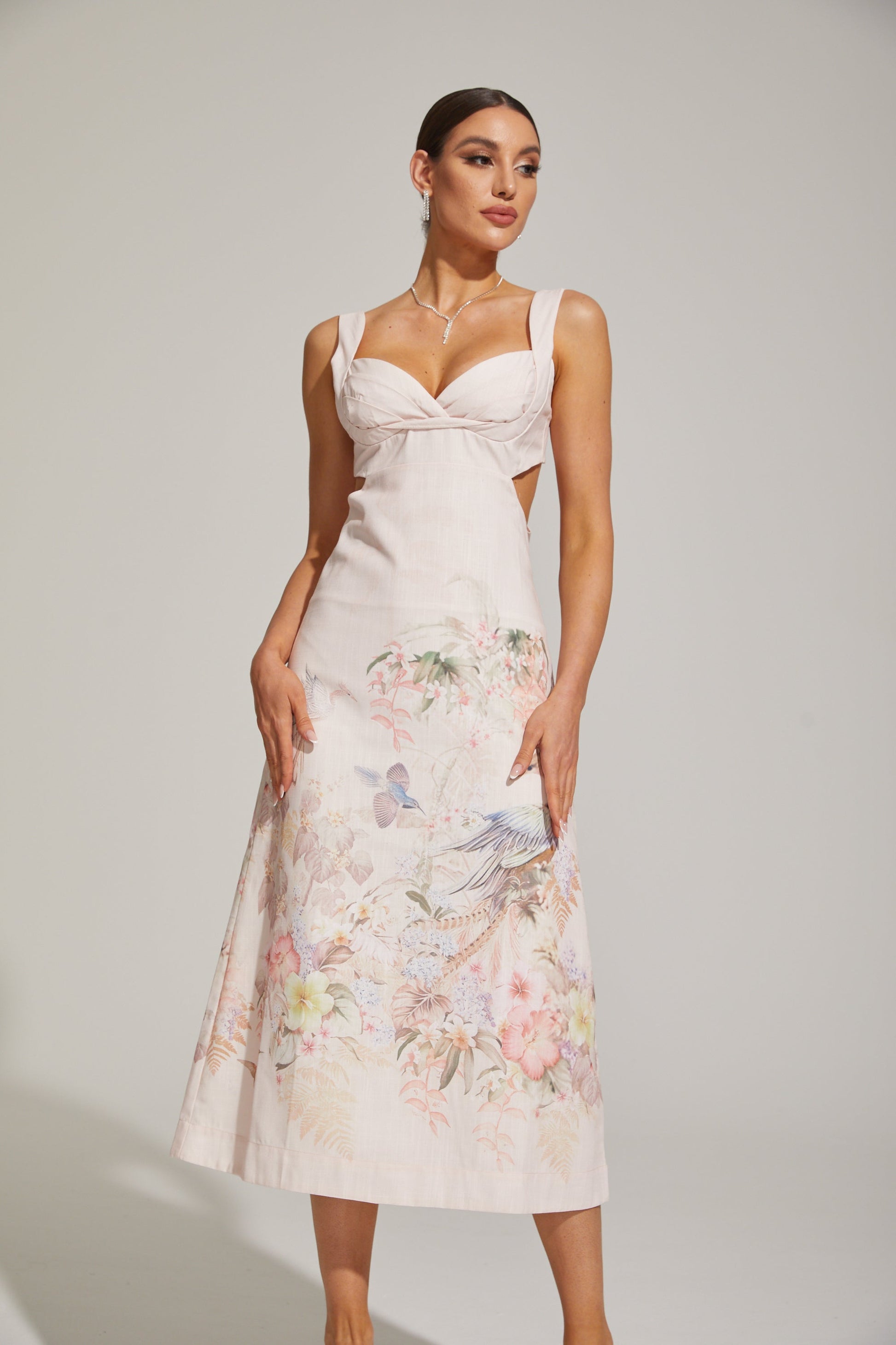 Apollonia Pastel Çiçekli Sevgili Midi Elbise