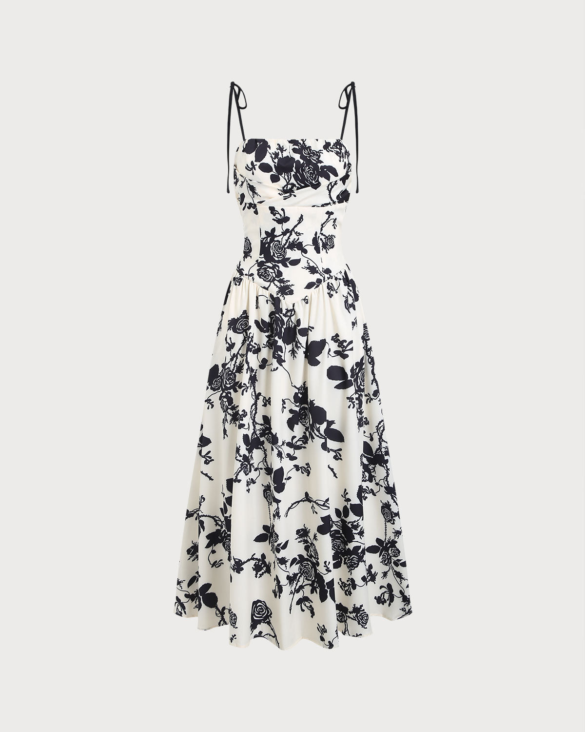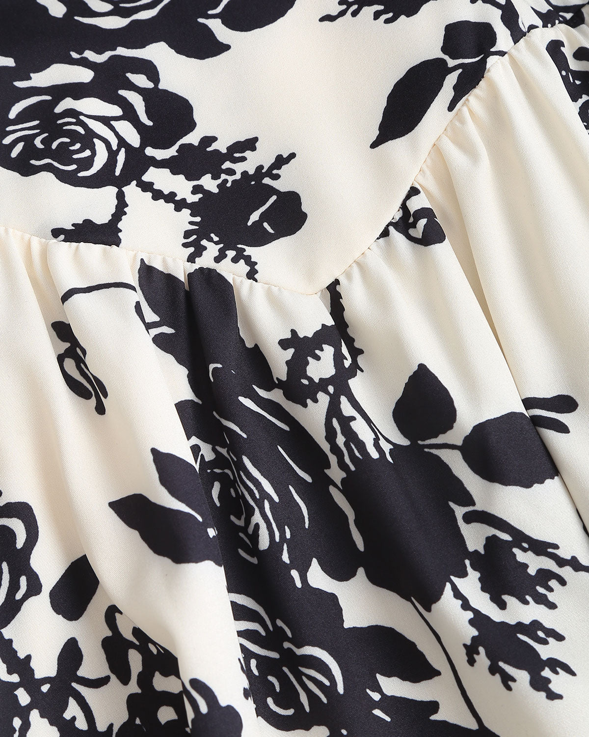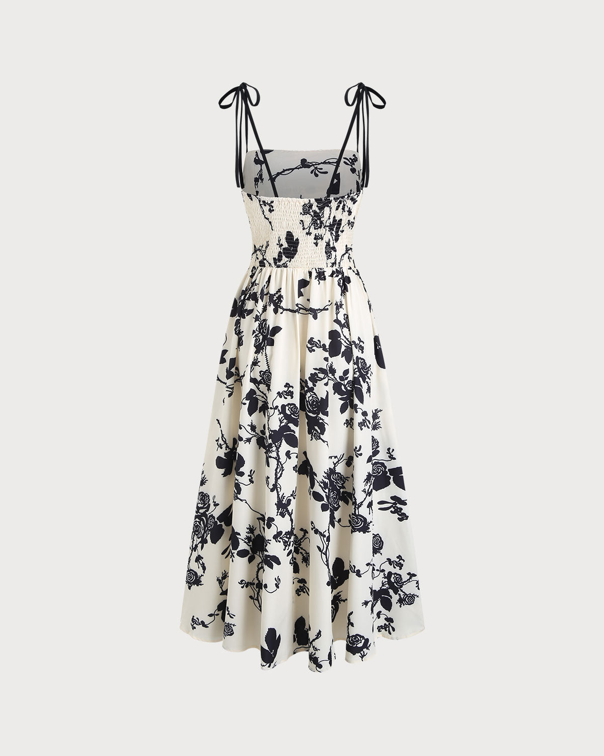 Kayısı Çiçek Desenli Büzgülü A Kesim Midi Elbise
