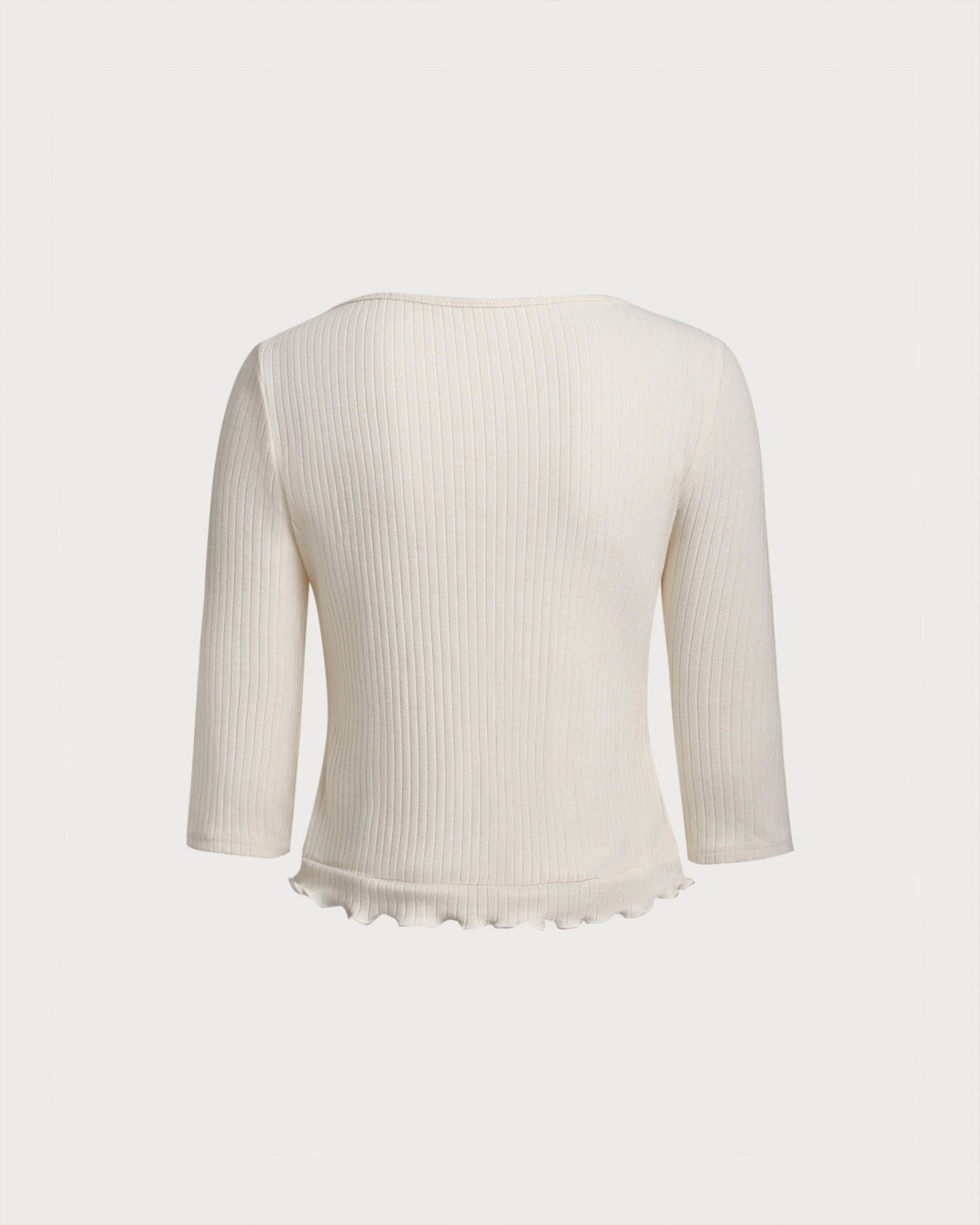Kayısı Rengi Ribanalı Yarım Kollu Örgü Tişört