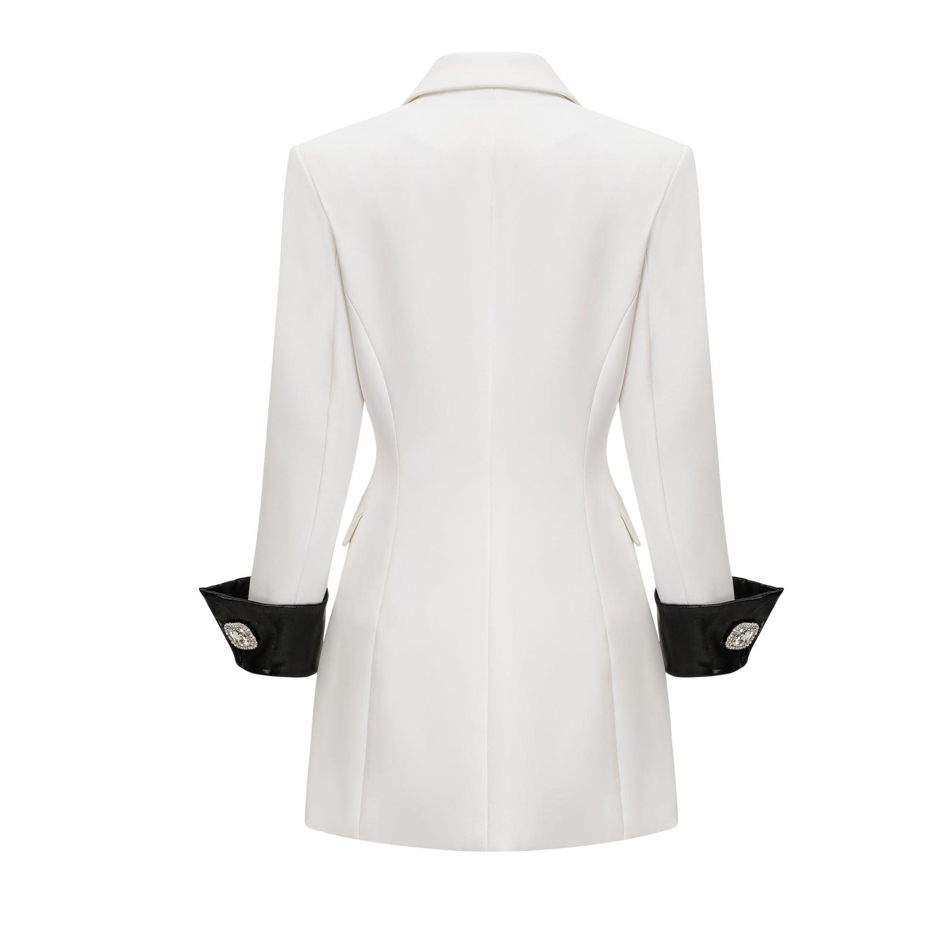 Aurora blazer elbise, kontrast detayları ve zarif tasarımıyla dikkat çekiyor. Şıklığı ve modernliği bir araya getiren bu parça, özel günlerde stilinizi ön plana çıkaracak.