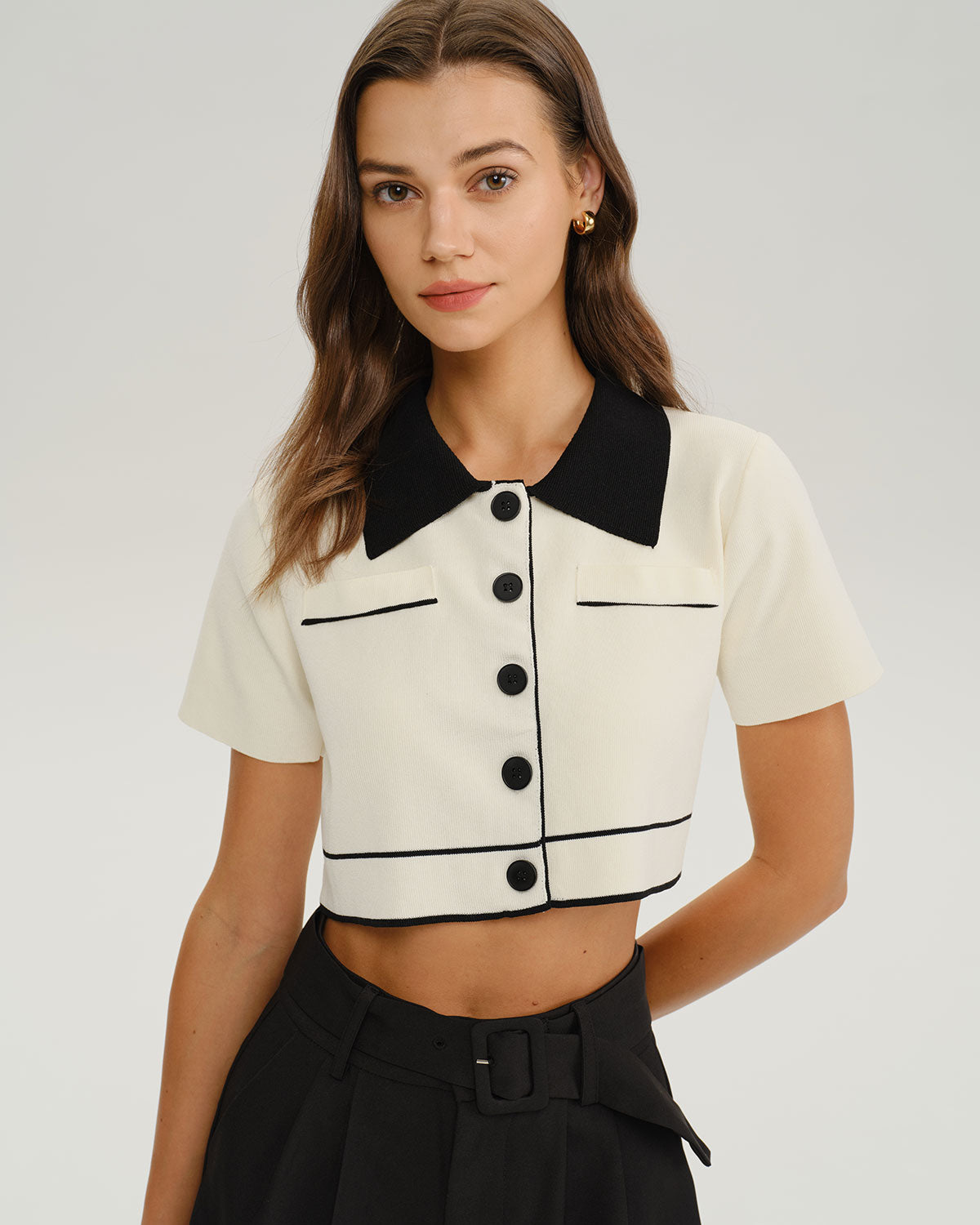 Bej Kontrast Tek Göğüslü Kısa Hırka