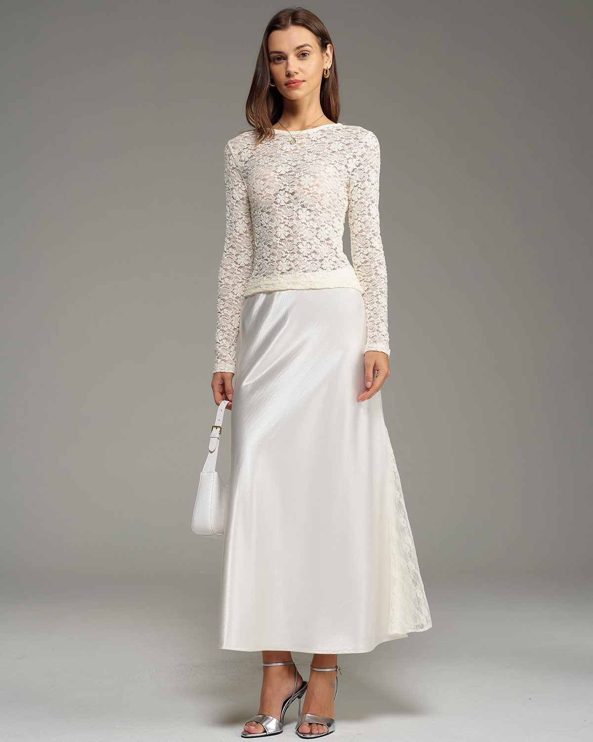 Yüksek Yakalı ve Midi Etekli Çiçek Desenli Dantel Elbise