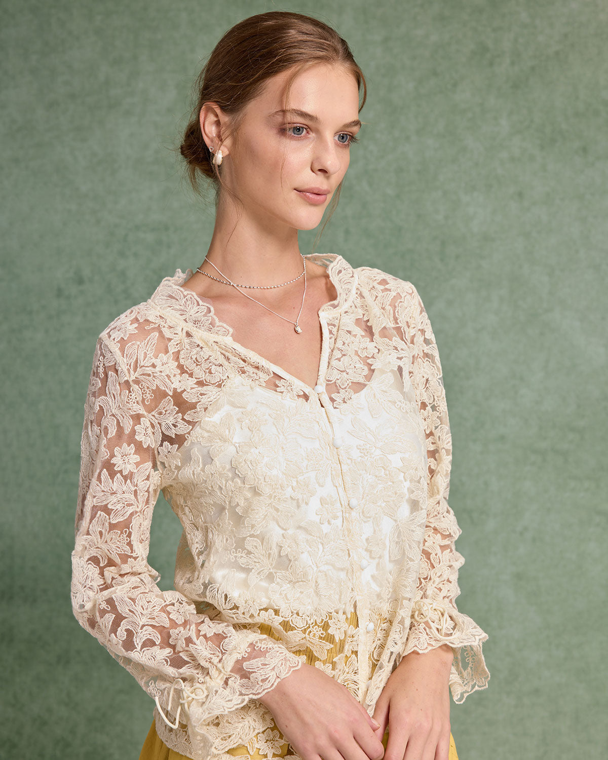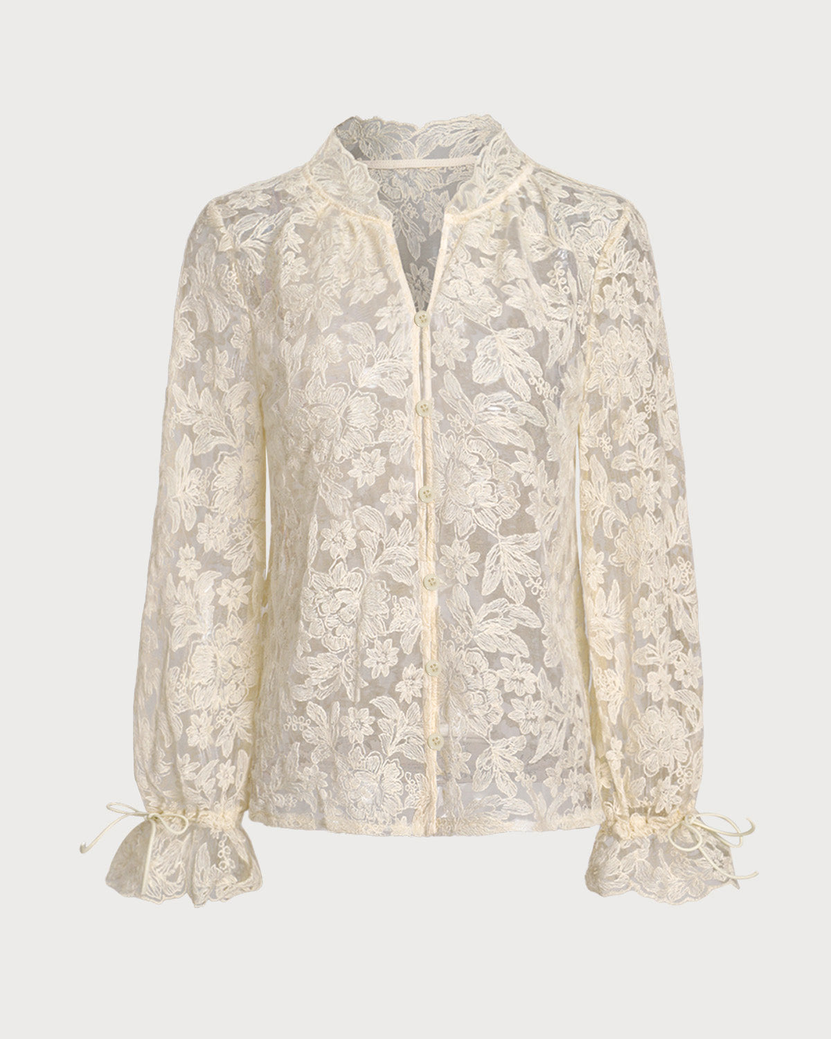 Bej V Yaka Volanlı Bluz