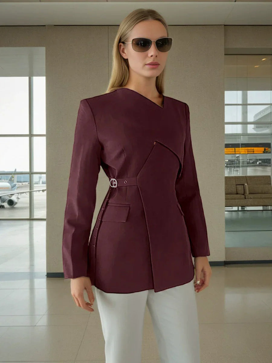 Kruvaze Yaka Kemer Detaylı Premium Ceket