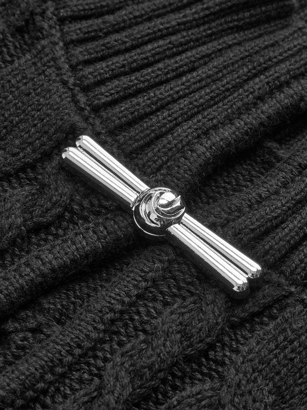 Siyah Örgü Desenli Metal Detaylı Kazak
