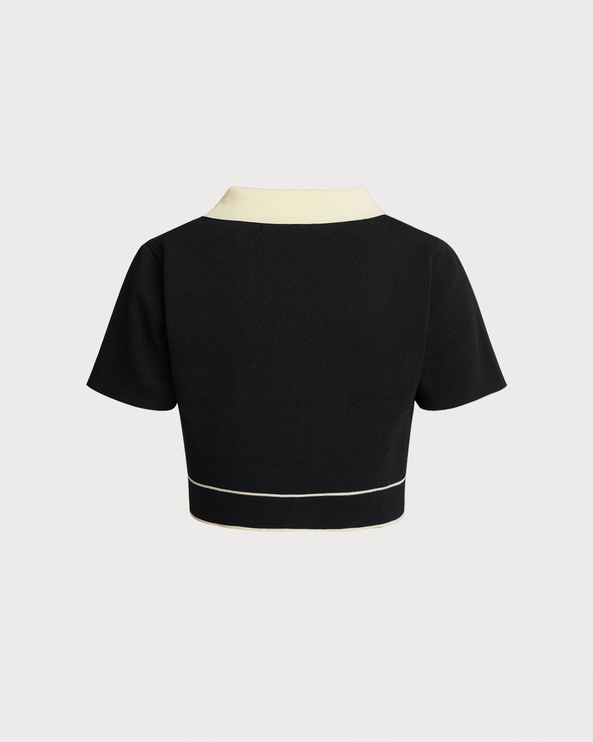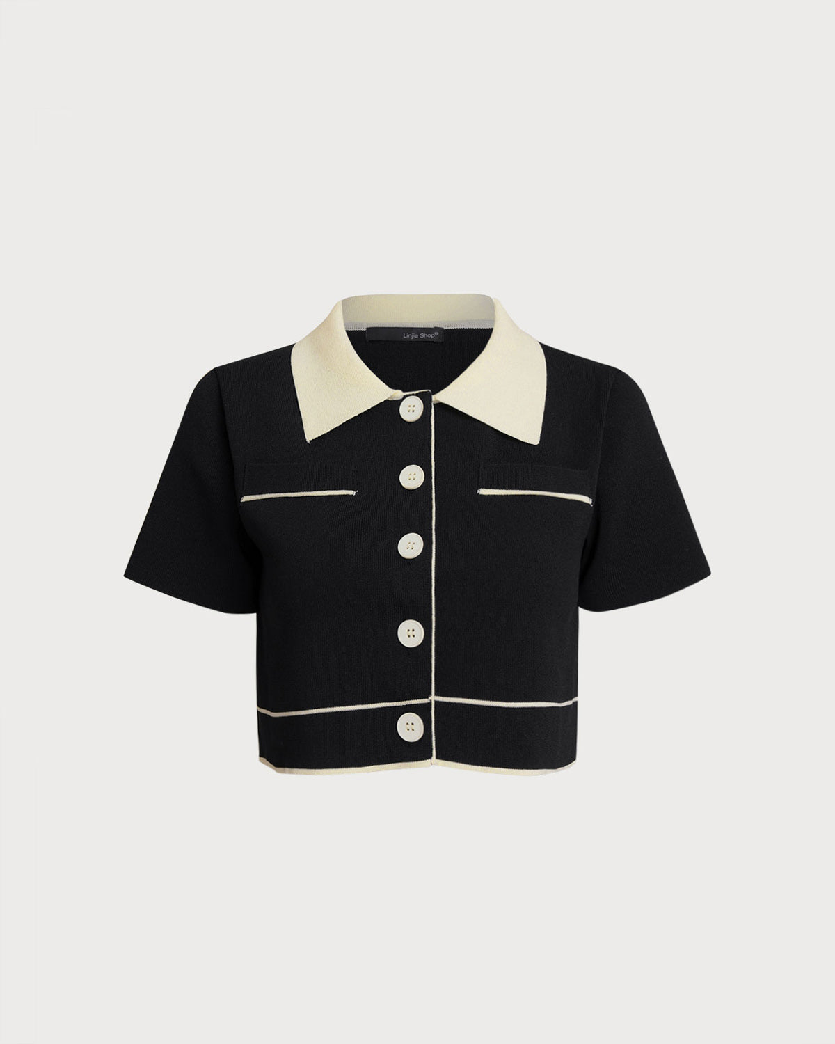 Siyah Kontrast Tek Sıralı Kısa Hırka