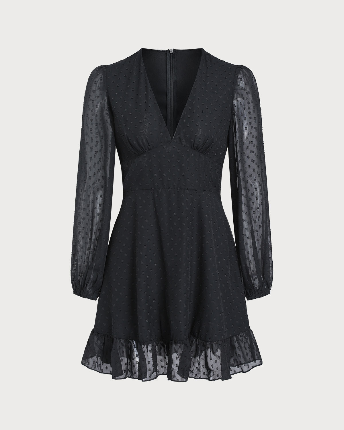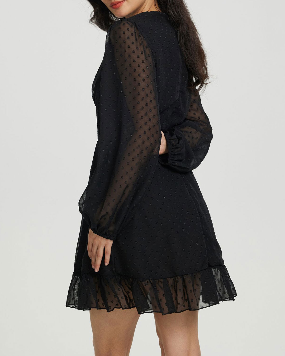 Siyah Puantiyeli Şeffaf Kollu Mini Elbise