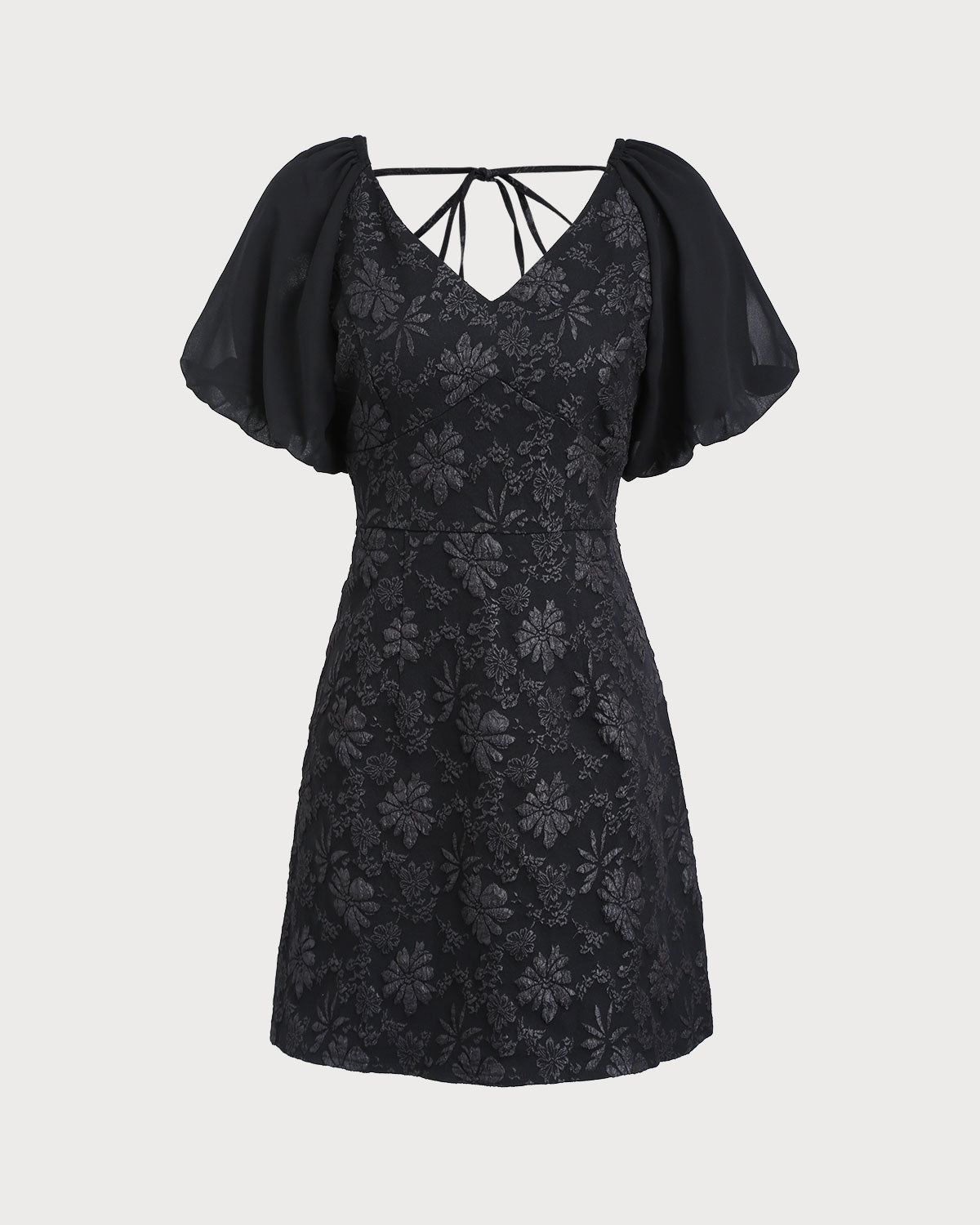 Siyah V Yaka Büzgülü A Kesim Mini Elbise
