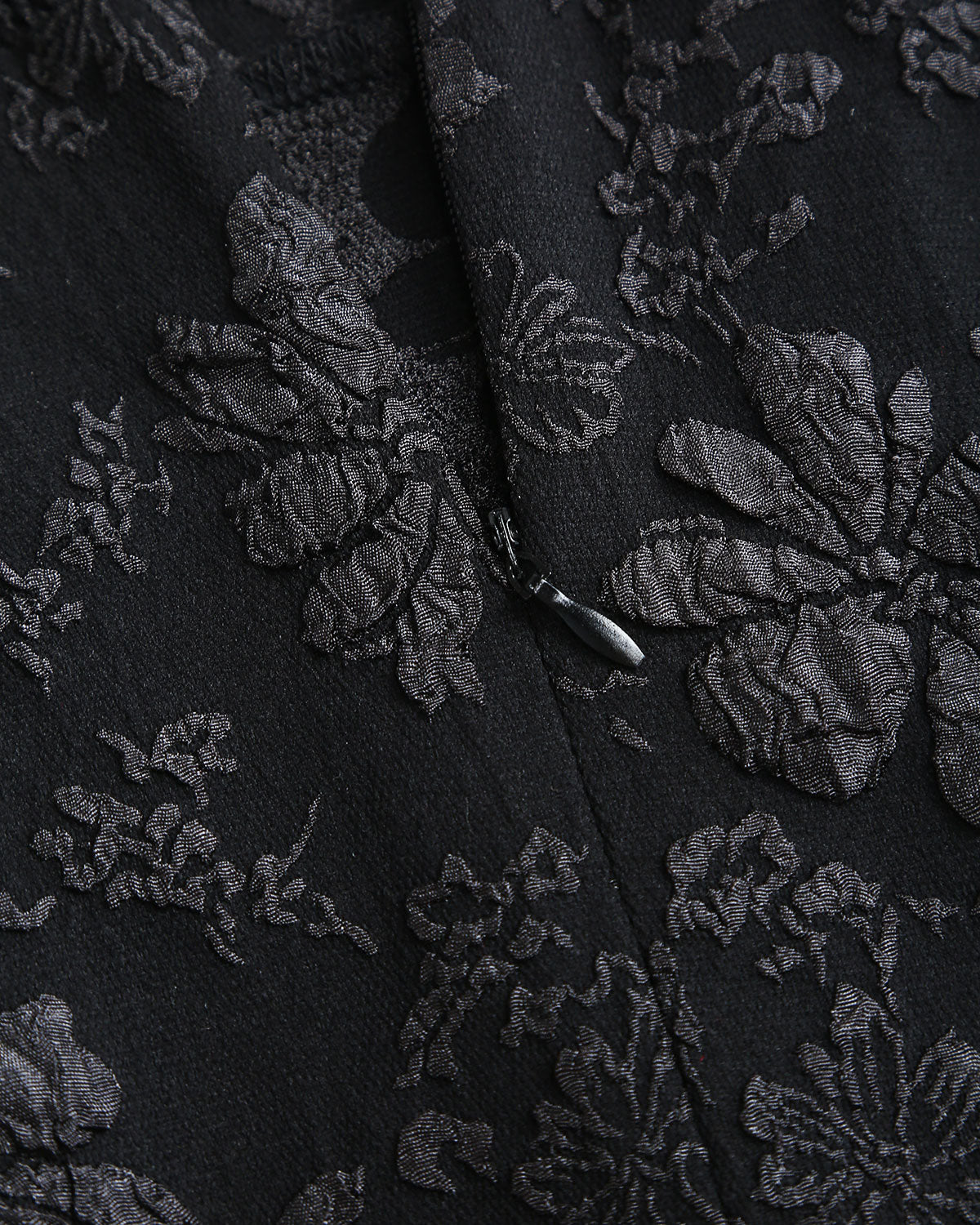 Yüksek Yakalı ve Midi Etekli Çiçek Desenli Dantel Elbise