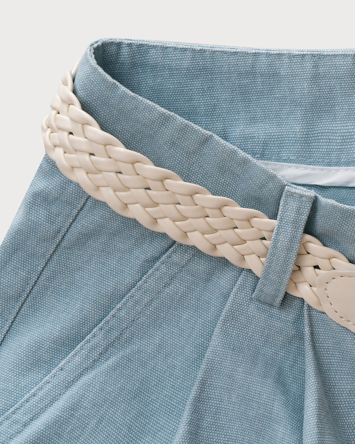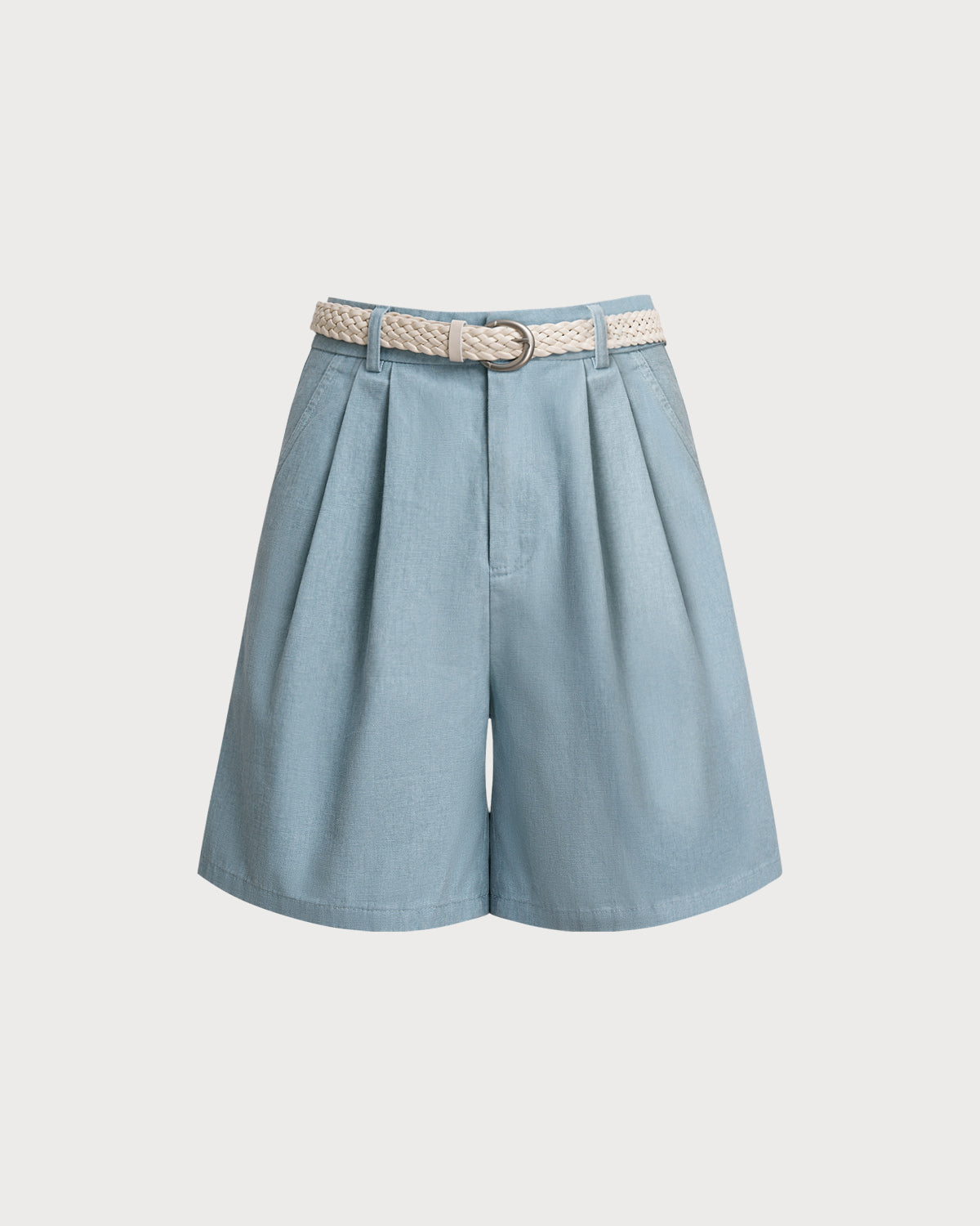 Mavi Büzgülü Kemerli Şort