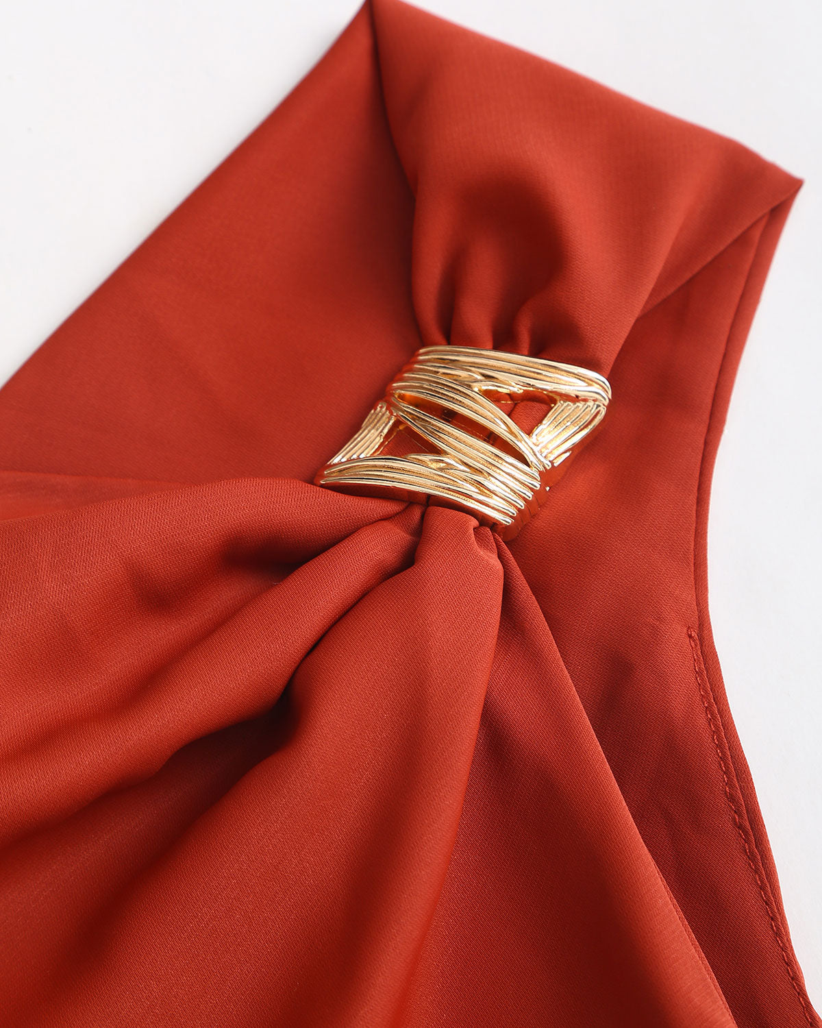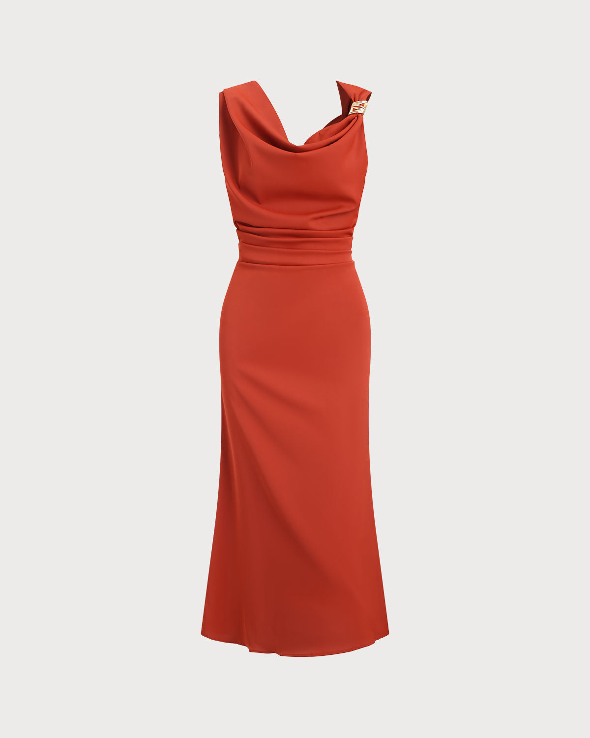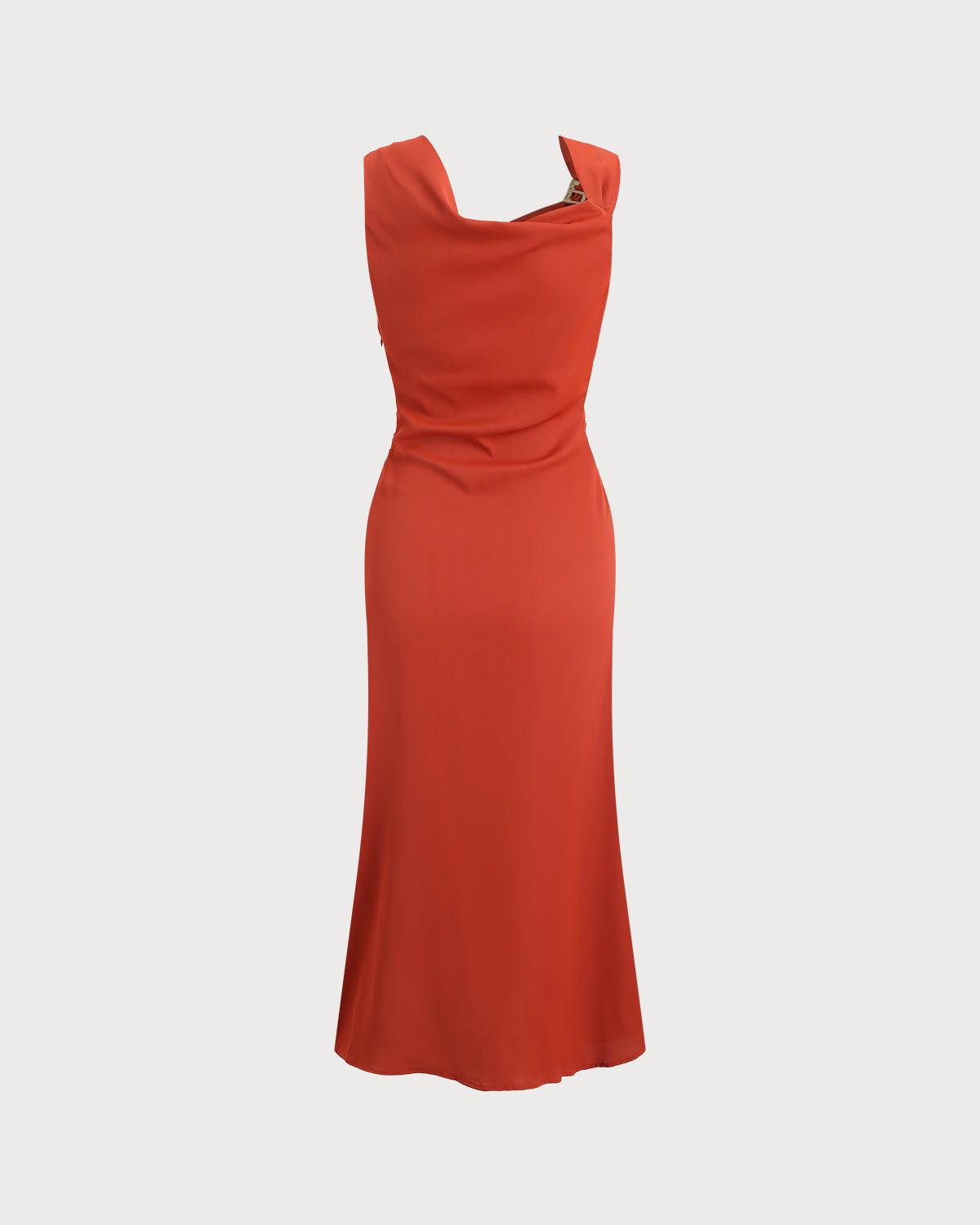 Tuğla Kırmızısı Kapüşonlu Yaka Kolsuz Midi Elbise