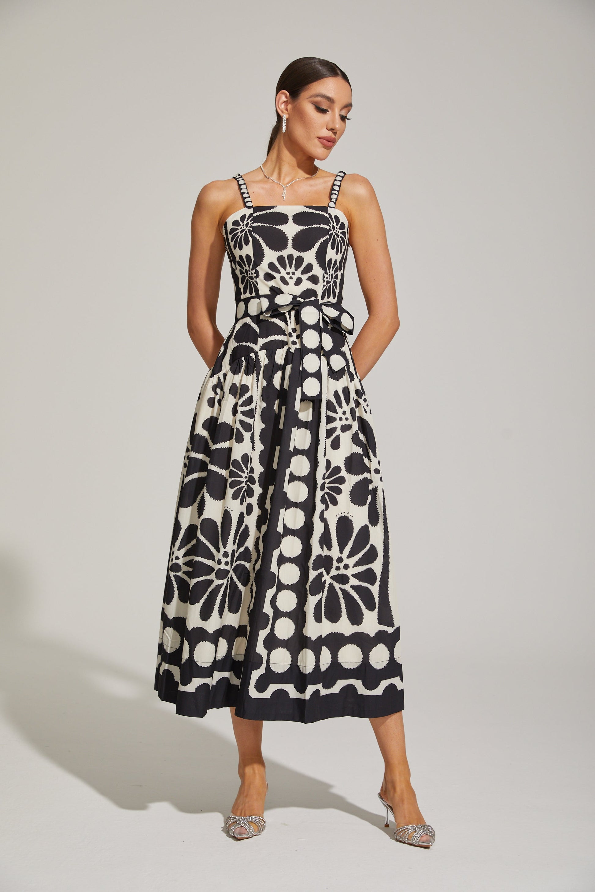 Briony Monét Çiçekli Mozaik Midi Elbise