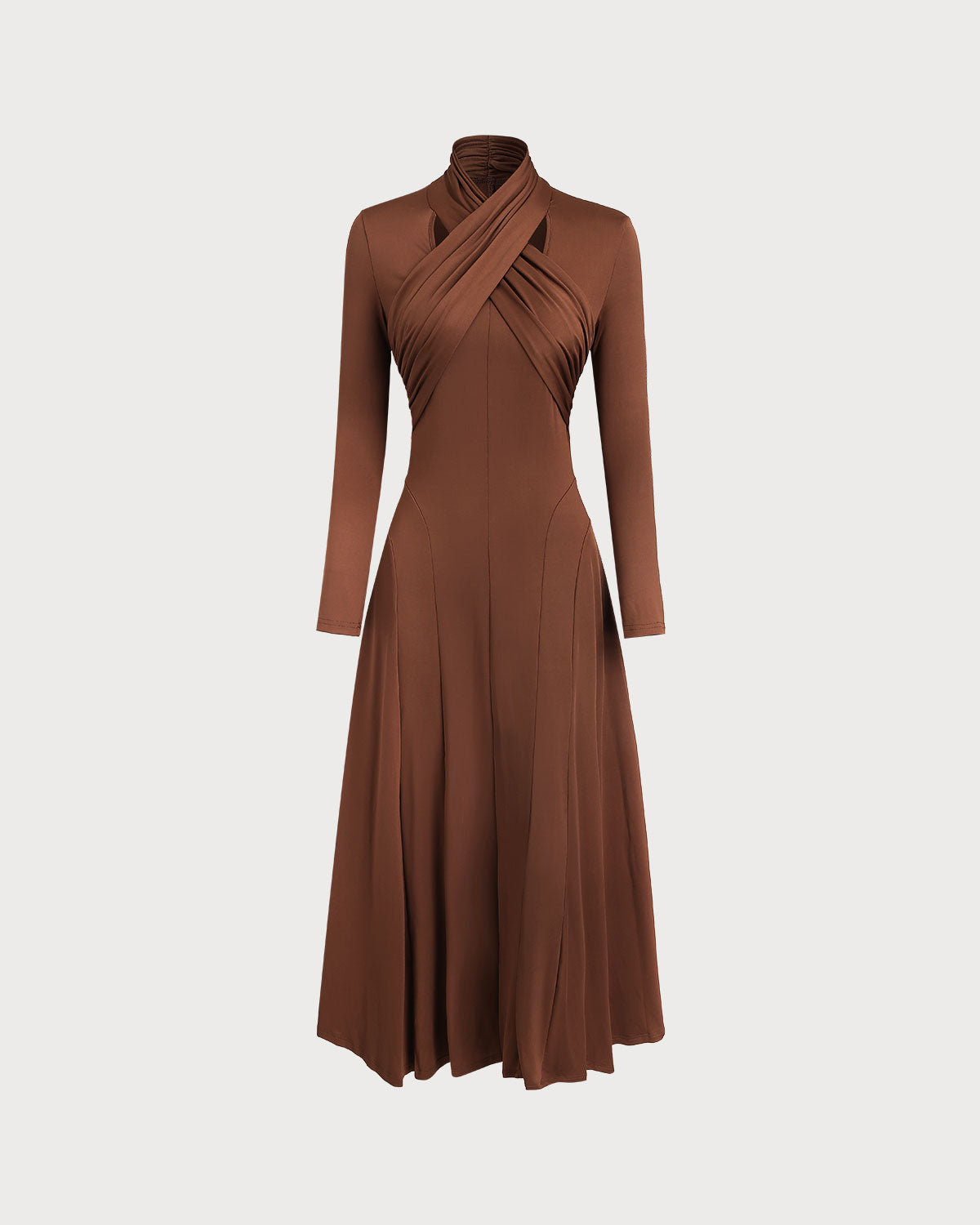 Kahverengi Asimetrik A Kesim Uzun Elbise
