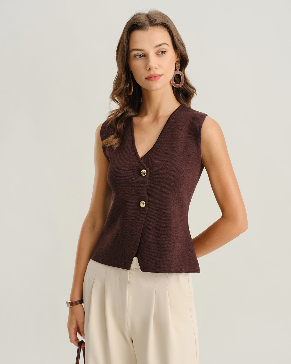 Kahverengi V Yaka Düğmeli Hırka