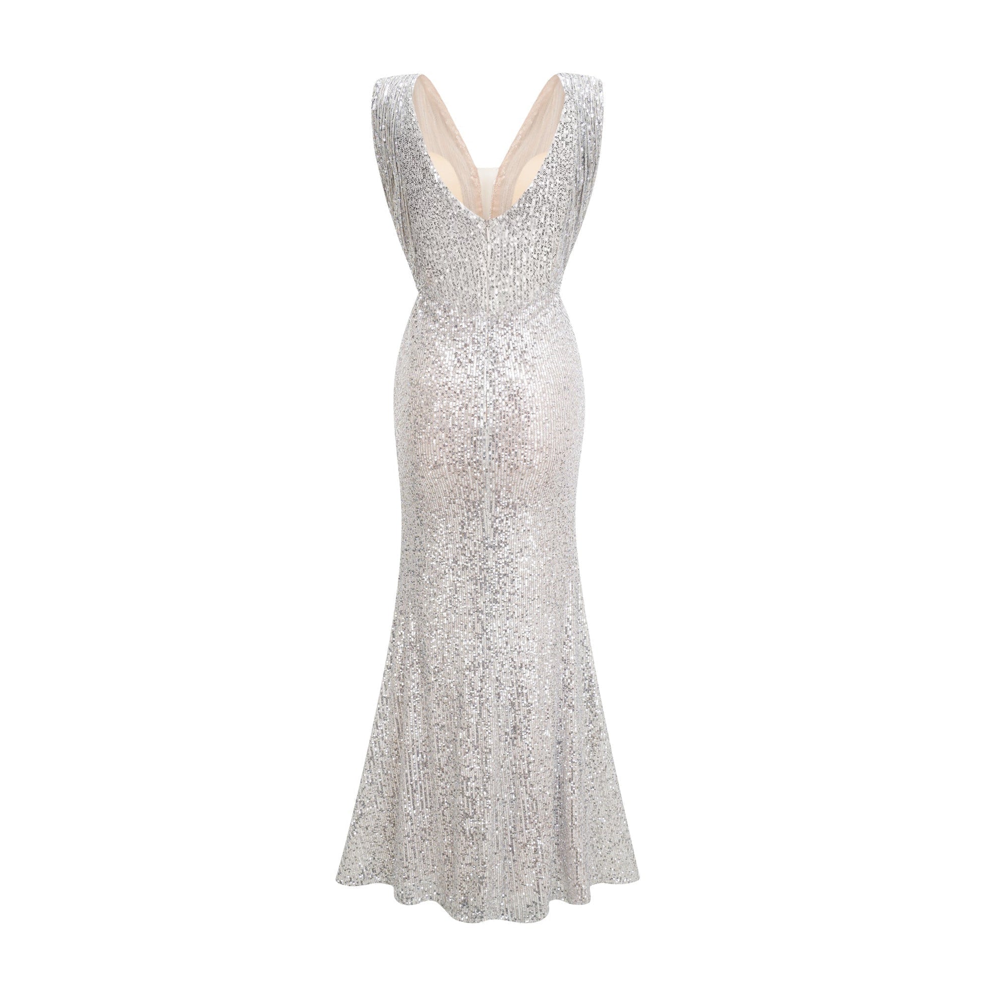 45% İndirimKira Şampanya Payetli Tüylü Uzun Elbise