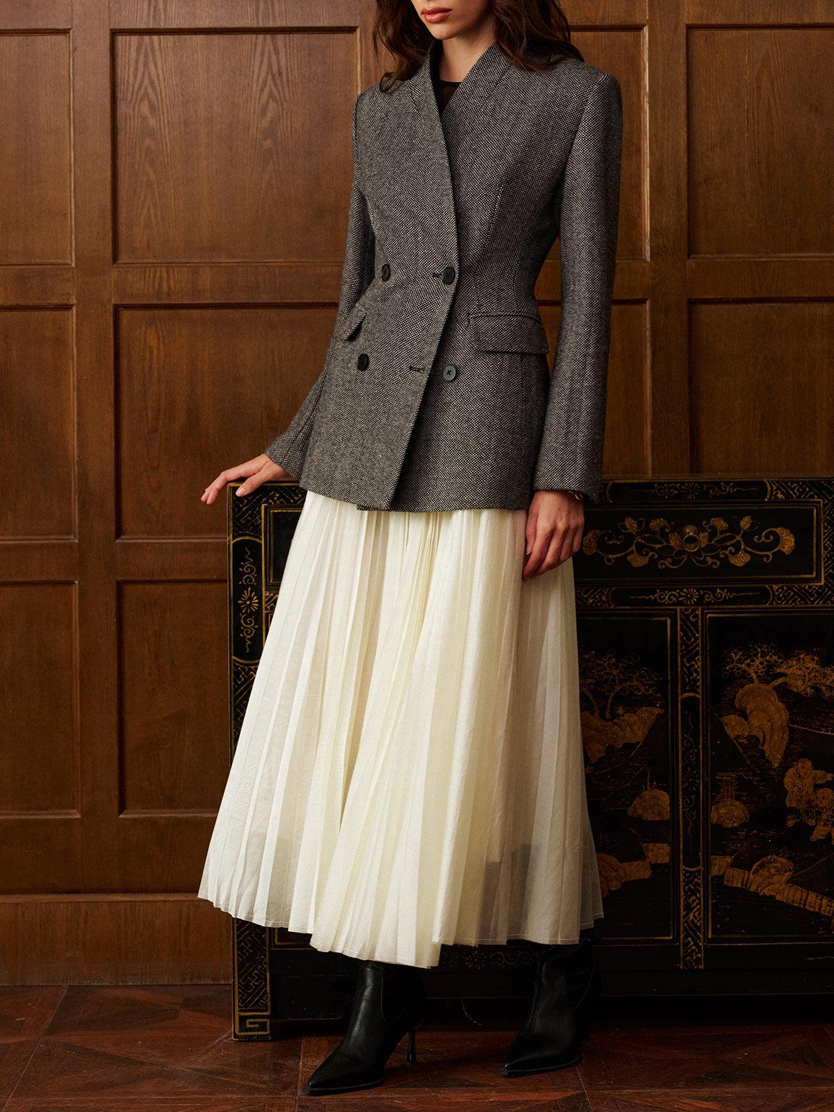 Çift Düğmeli Gri Kazayağı Desenli Blazer Ceket